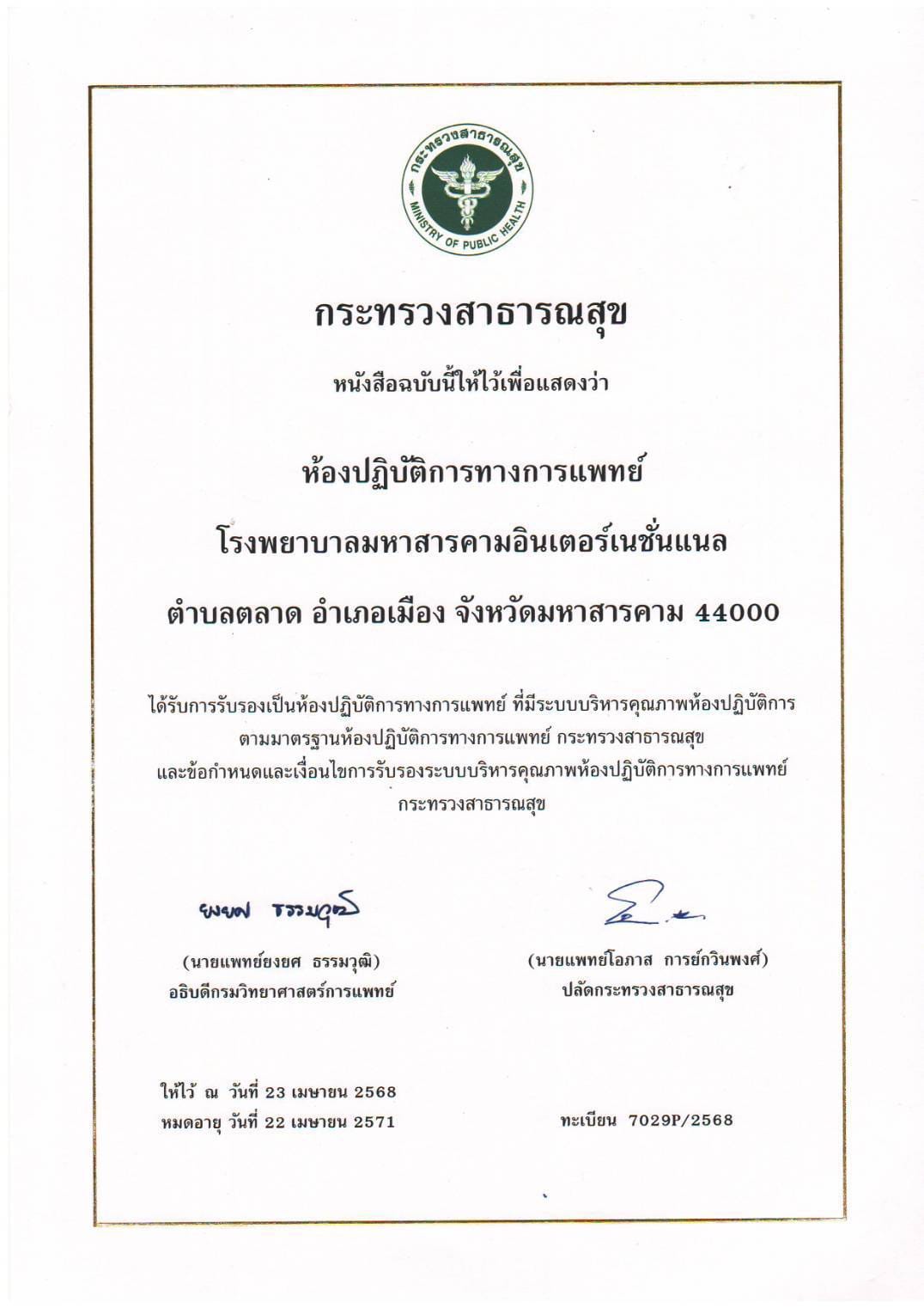 ห้องปฏิบัติการได้รับการรับรองมาตรฐานจากกระทรวงสาธารณสุข